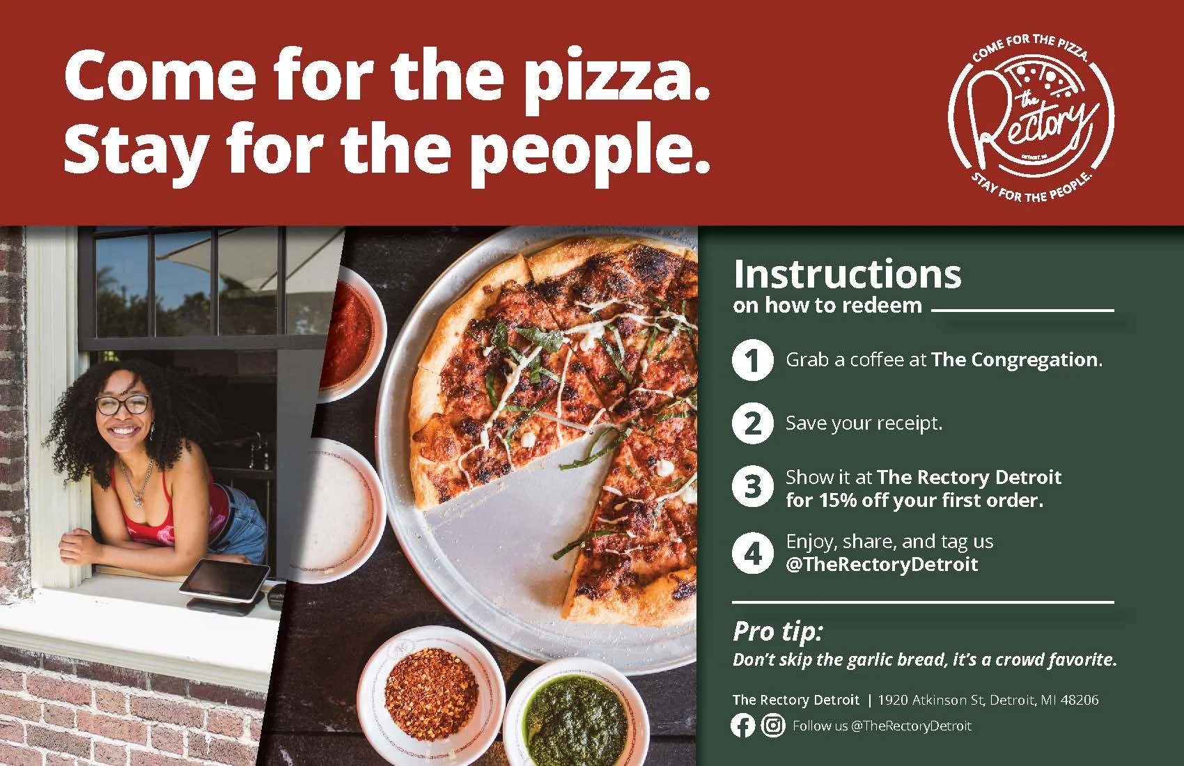 Revitalized The Rectory’s neighborhood pizza brand through a digital rebrand, logo refresh, and full campaign launch that increased local visibility and engagement. The creative rollout unified their print, digital, and in-store presence.